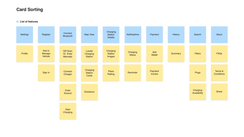 Card Sorting: Conducted a closed card sorting exercise to evaluate how users would expect information to be grouped within the app’s navigation.