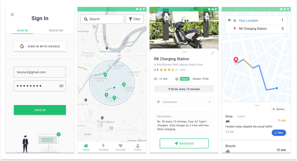 This app enables 2-wheeler/3-wheeler EV users to connect to BLE-based charging stations, initiate charging,