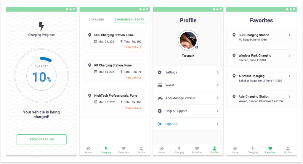 Wireframes & Interactive Prototypes: Created mid-fidelity screens in Adobe XD, which focused on BLE pairing, start/stop charging, and real-time feedback.