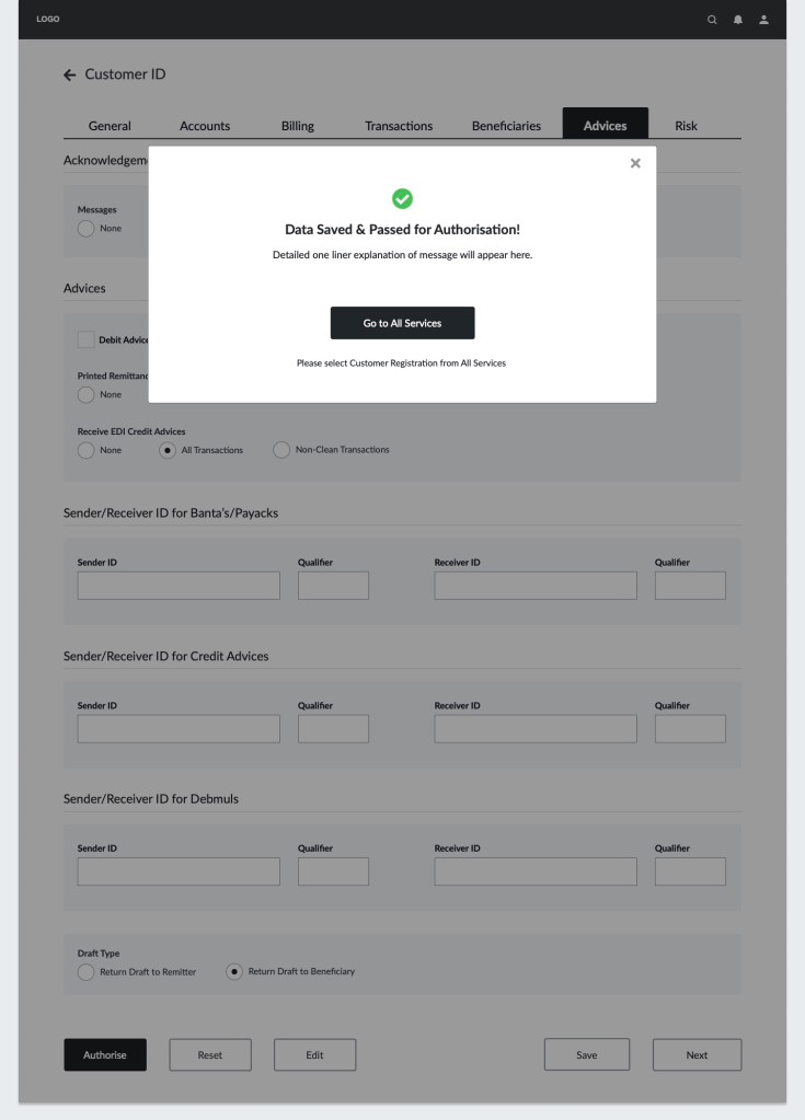 This project involved the redesign of the Customer Registration service for one of the UK’s largest banks. The existing application was built on a Windows DOS environment, with a dated, text-heavy interface and poor navigation. The objective was to modernize the interface while addressing business needs such as role-based access (read-only, limited, and maker-checker entitlements)